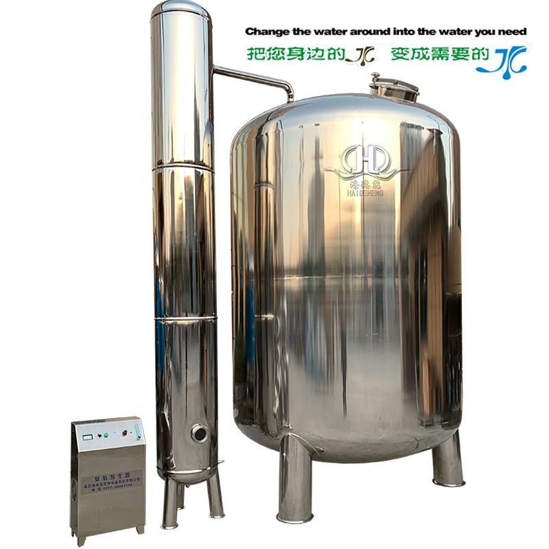 臭氧是經過管道進入氧化塔底部,經過曝氣器,經微孔鼓泡器發出另微氣泡,氣泡在上升的過程中把臭氧充沛溶解于水。水是由臭氧塔的頂部散落下來,在從臭氧塔的頂部天然流走。確保了臭氧與水混合的充沛時刻。使滅菌作用更測底,頂部又配有 尾氣排放和溢流口,確保剩余的臭氧不會停留在室內。影響作業人員出產。溢流口確?;旌纤炔克疂M后,水不會倒流回到臭氧發生器,損壞臭氧發生器。