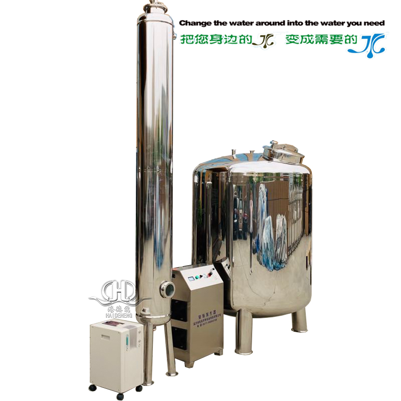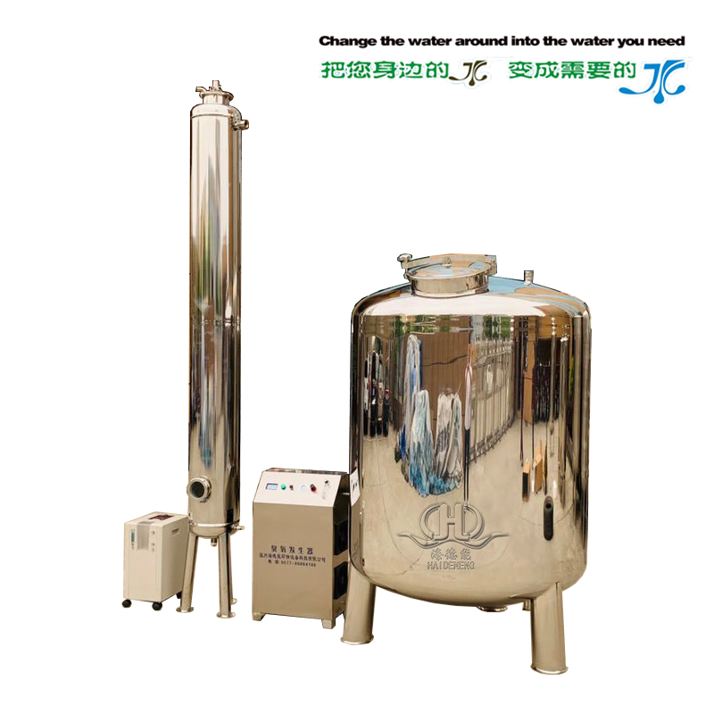臭氧是經過管道進入氧化塔底部,經過曝氣器,經微孔鼓泡器發出另微氣泡,氣泡在上升的過程中把臭氧充沛溶解于水。水是由臭氧塔的頂部散落下來,在從臭氧塔的頂部天然流走。確保了臭氧與水混合的充沛時刻。使滅菌作用更測底,頂部又配有 尾氣排放和溢流口,確保剩余的臭氧不會停留在室內。影響作業人員出產。溢流口確保混合塔內部水滿后,水不會倒流回到臭氧發生器,損壞臭氧發生器。