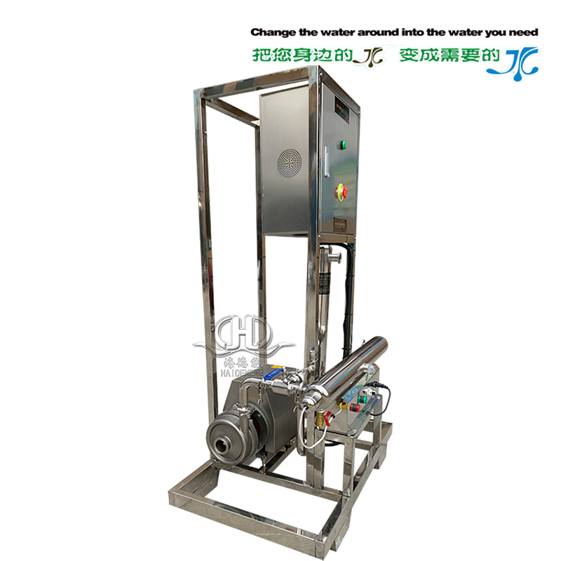 純化水分配系統的主要目的在于通過分配泵和純化水分配管路將純化水輸送到每個用水點。為保證管路中純化水的流速和壓力,純化水設備設計人員應計算純化水分配系統管路系統和管路中設備所帶來的壓力損失,從而選擇合適的分配泵。純水分配系統還應該包含附加的設備,在維持純化水水質的同時,對純化水進行進一步純化和消毒,并對管路中水質進行監控。因此需要采用管路紫外線裝置以降低管路純化水的微生物和總有機碳水平。
