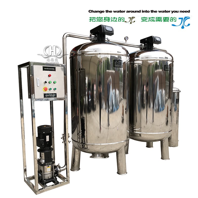 主要用于去除水中鐵銹、泥沙、藻類、懸浮物等雜質(zhì),降低水的濁度,使出水濁度小于0.5NTU,CODMN小于1.5mg/L,含鐵量小于0.05mg/L,SDI≤5。可通過控制閥隨時(shí)進(jìn)行反洗、正洗,以沖洗掉其表面的污物,防止其堵塞,恢復(fù)其過濾能力。